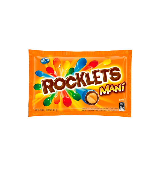 Detalle: MANI C/CHOC.ROCKLETS – Variedad: CONFITADOS Presentación: 16 x 40 gr. Unidades por Caja: 12